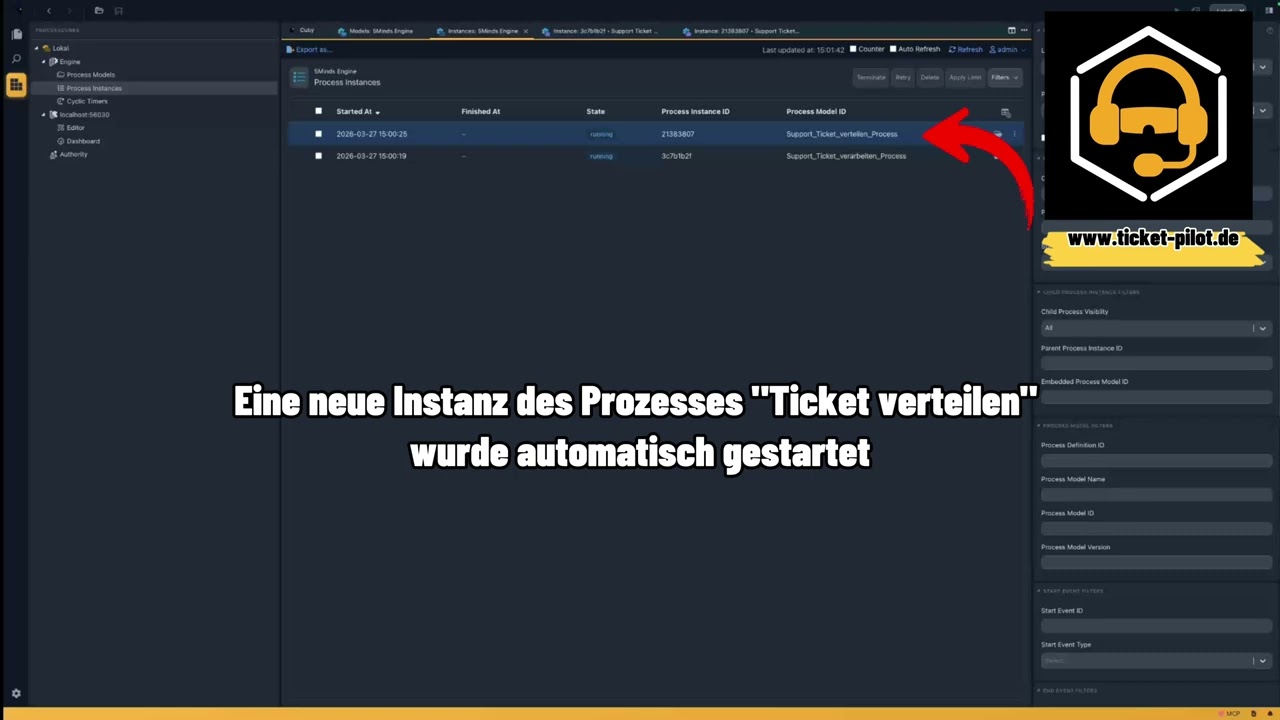 BPMN-Template aktivieren, erstes Ticket einwerfen, zusehen wie es durch den Prozess läuft. Ab jetzt läuft das automatisch.